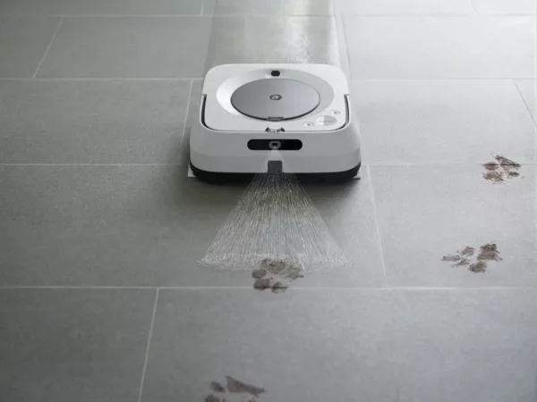 Η Braava είναι εξοπλισμένη με ψεκαστήρα ψεκασμού ακριβείας που εφαρμόζει νερό στο πάτωμα όταν σφουγγαρίζει. Ειδικοί αισθητήρες διασφαλίζουν ότι το ρομπότ δεν χτυπά έπιπλα, τοίχους ή χώρους κάτω από τις σκάλες. Μπορείτε να χρησιμοποιήσετε το διάλυμα καθαρισμού Brava jet® για να απομακρύνει ακόμα πιο αποτελεσματικά τη βρωμιά και να αφήσει και ένα φρέσκο άρωμα.